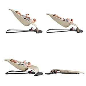 Four positions – suitable for both rest and playYour baby’s playfulness can quickly turn into sleepiness, so the bouncer has four positions—play, rest, sleep and transport mode. It easily and quietly adjusts from the highest play position to the lower rest position and the lowest sleep position. When the bouncer is not in use, it folds completely flat for storing or transporting. |