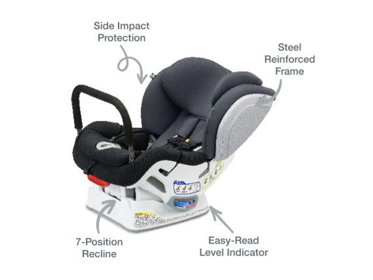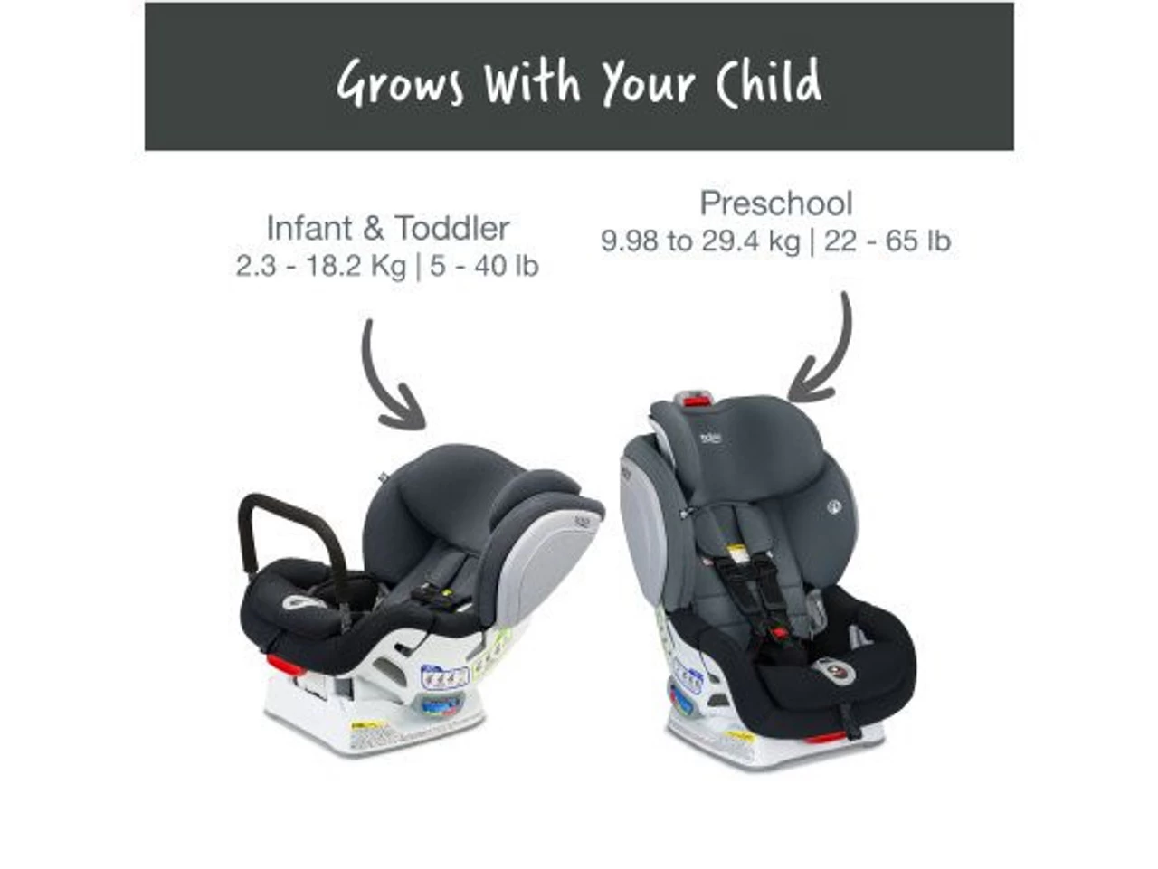 As your child grows from baby to toddler, the Advocate ClickTight convertible car seat easily transitions from rear-facing to forward-facing.