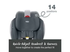- • 14-position, quick-adjust harness & headrest move together using one hand for the proper fit as your child grows.