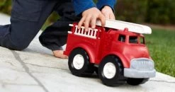 Put out 3-alarm blazes. Rescue kittens from treetops. Protect the environment from harm. This is just a typical day in the life of the Green Toysâ„¢ Fire Truck, the world’s greenest emergency vehicle. Solidly constructed from 100% recycled plastic milk containers that save energy and reduce greenhouse gas emissions, the Green Toys Fire Truck has no metal axles, so it’s safe for both the earth and the Good Green Funâ„¢ seekers who call it home. Sturdy roof ladder pivots vertically and rotates 360 degrees. Two removable side ladders.