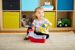 No water rescue is out of reach when the Green Toys™ Rescue Boat & Helicopter gets the call! This two-in-one toy is just as fun on land as it is in water, with a bright yellow, full-size Helicopter nestled on the back deck of the red and white Rescue Boat. The set also includes two characters – a Captain Duck and Pilot Bear – ready to go wherever your child’s imagination takes them. Specially designed to float in the water and open for the dishwasher, this ship is a perfect addition to any bathtub fleet.