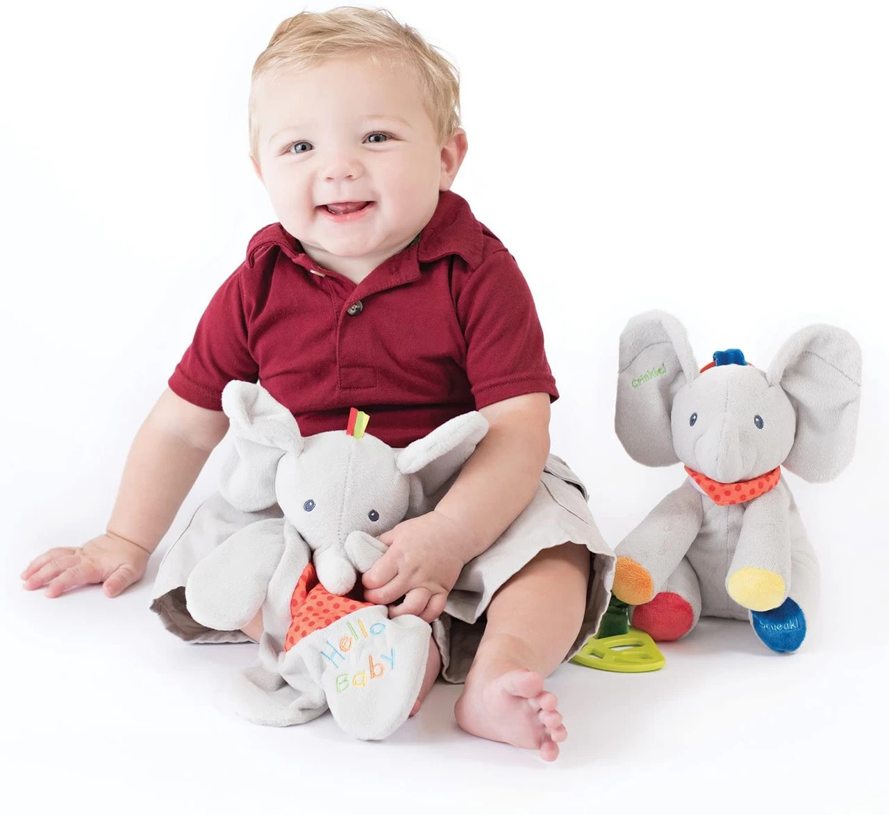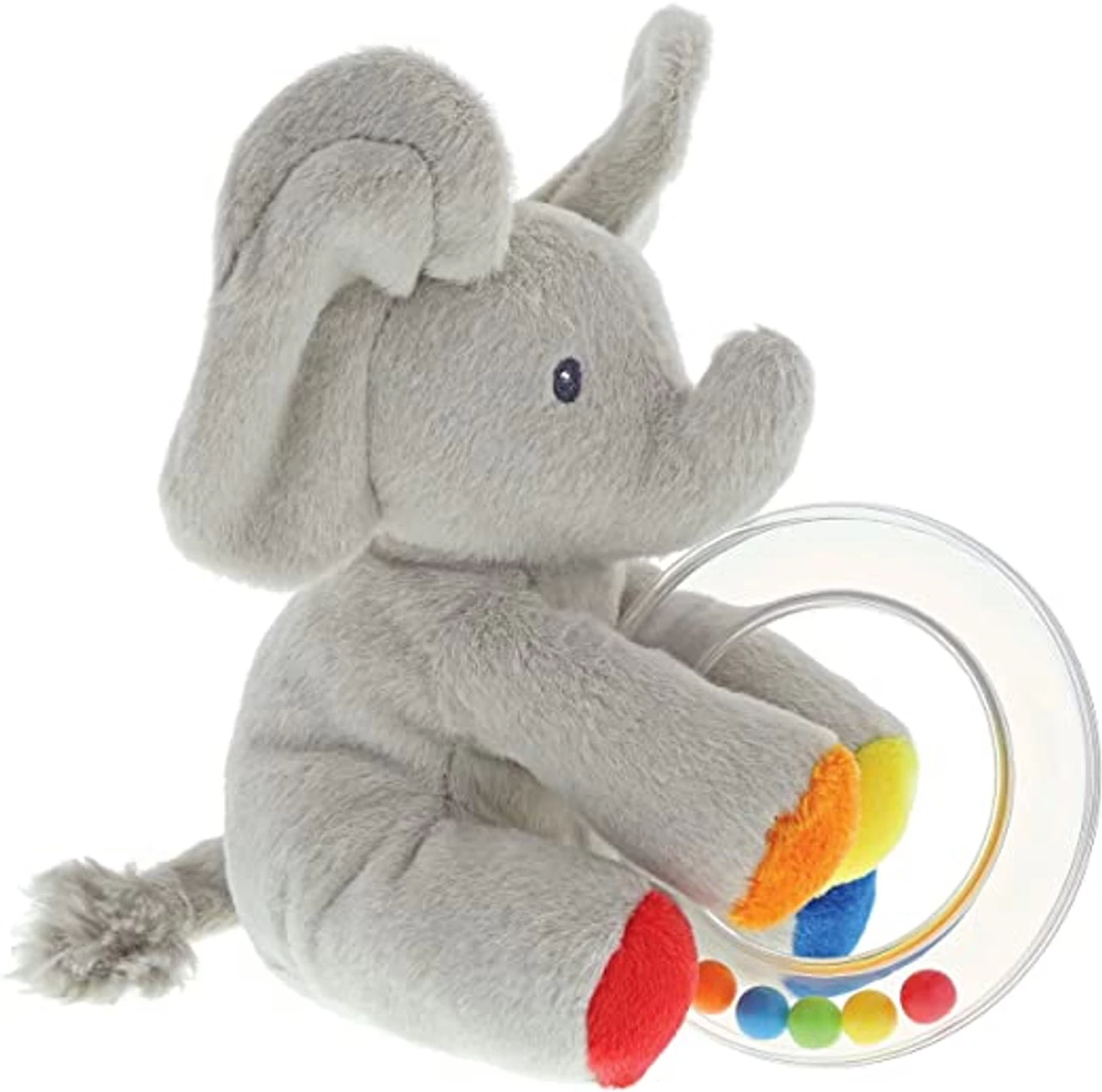 Hello, baby! Flappy the elephant is always ready to play with baby. This cute 5-inch plush rattle version of everyone’s favorite elephant is the perfect size for little hands and sure to keep baby engaged during play with sensory stimulating colorful feet and beads!