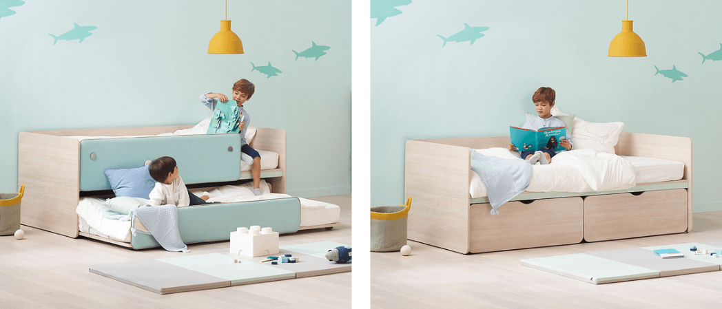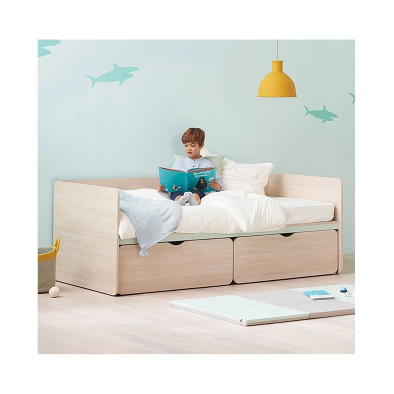 Use the two story sliding bed lower drawer to take place of the lower bed, make more store space for your child.