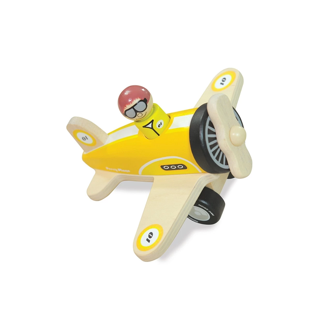 A single seat plane that comes complete with a removable peg pilot and a propeller that can be spun. This durable plane with attractive paintwork is made from sustainable rubberwood.