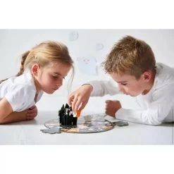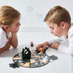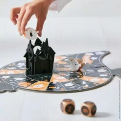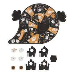 For lovers of the paranormal and haunted castles! This ghost-themed board game will make you shiver with pleasure! Based on the rules of the French ‘jeu de l’Oie’ game, this board game is suitable for children from 4 years old. The goal of the game: to progress and be the first to bring your ghost to the castle! All this while avoiding the traps and being strategic. A raised castle on the board and cute ghosts are part of this colourful board game. Assemble the board and the coveted castle and off you go! Ideal for playing as a family or with friends, from 2 to 4 players. This game contains: a board (in 4 parts), a castle (in 5 parts), 4 ghosts and 2 dice. Don’t be afraid and come and play!