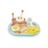 A market crate with 9 wooden fruits and vegetables to cut: zucchini, carrot, tomato, turnip, pear, lemon, apple and strawberry, as well as a board, a knife and a colander… Everything you need to make the delicious dishes imagined by your child.