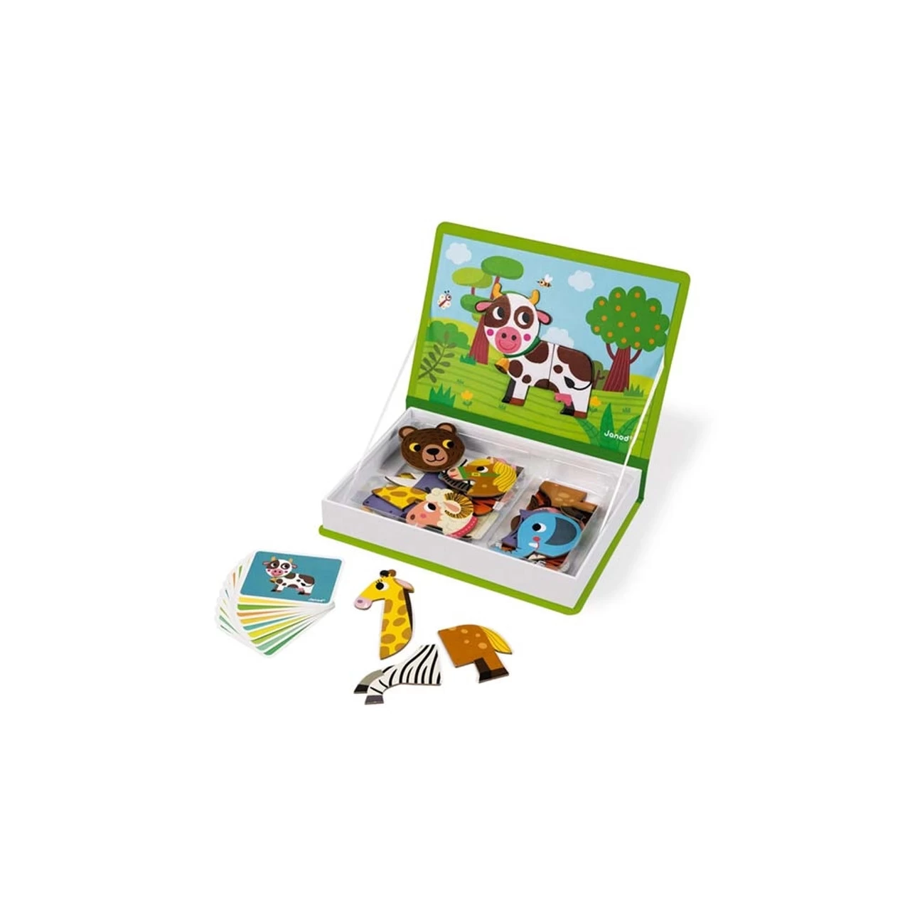 Magnetic educational game in cardboard on the animals theme. Composed of 30 magnets and 10 cards.