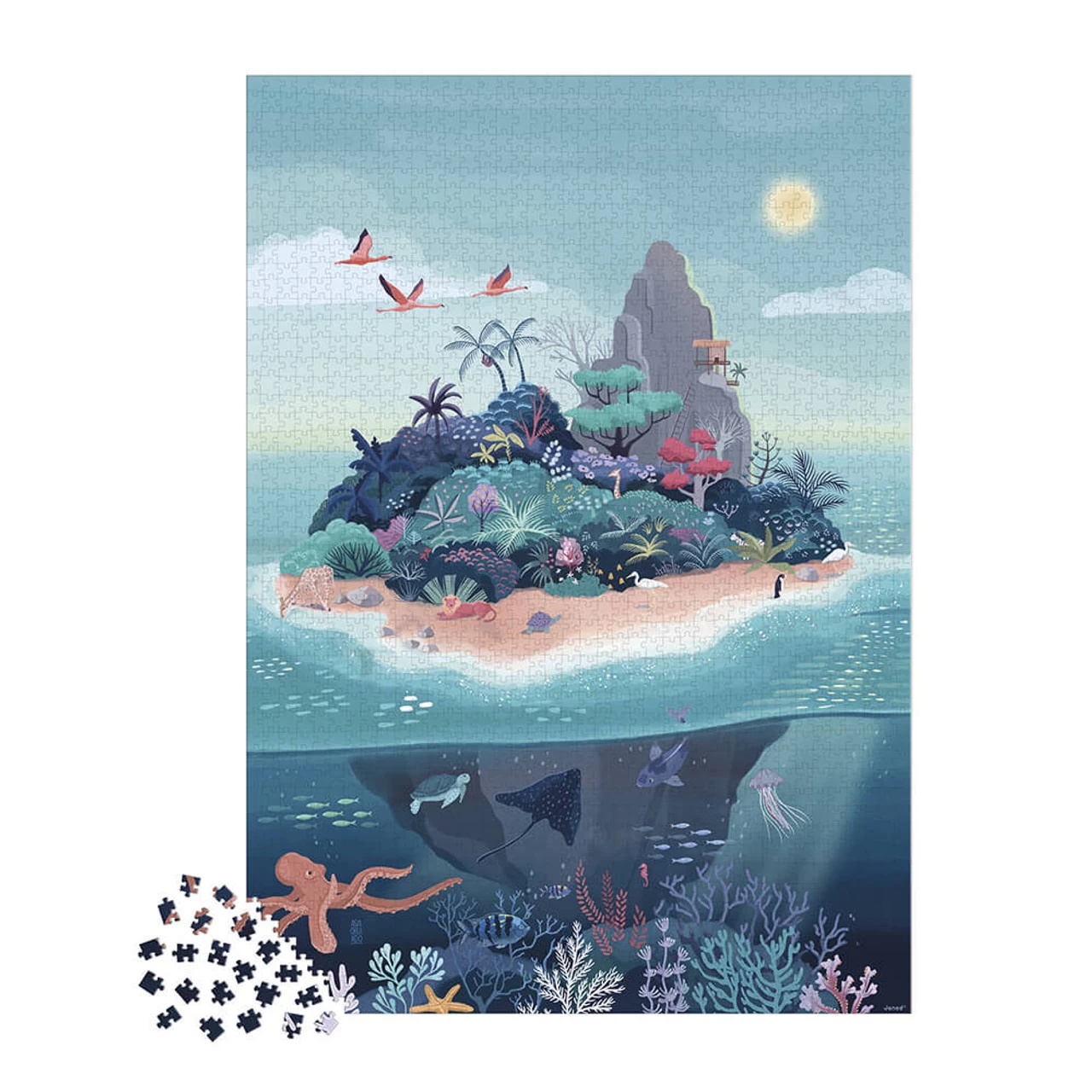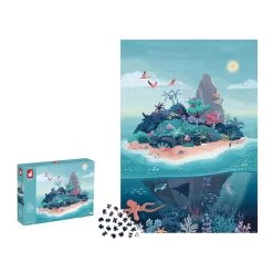 What a mysterious and entrancing island! Thanks to this beautiful 2000-piece puzzle, you dive into a brightly coloured universe where this island, populated by wild animals and dense vegetation, is a call to escape! Alone or as a family, discover the very detailed surface of this magnificent picture and the seabed which is also rich and soothing. Each element makes you want to reconstruct this large, 96.1 x 68.2 cm, vertical puzzle! A superb scene that you can make from the age of 10 in order to exercise concentration and enjoy a moment of calm. Of course, adults will also be charmed by the exercise. What satisfaction to then be able to admire the work done and enjoy this landscape! This puzzle is made in Europe. This product is made of FSC® -certified and other controlled material.
