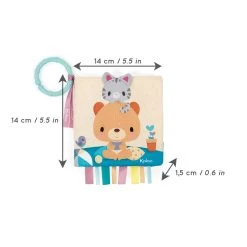 This illustrated early learning book tells the story of Choo the bear at home with his parents and kitten. It’s raining outside, Choo stays at home with his parents to spend calm and sweet moments with his kitten. Introduce baby to beautiful illustrations with characters that have endearing expressions. The book includes several early learning activities: rustling paper, squeaker, mirror, flaps and ribbons to play with. This illustrated book is ideal for spending a special moment with baby, helping him develop his imagination and his senses.