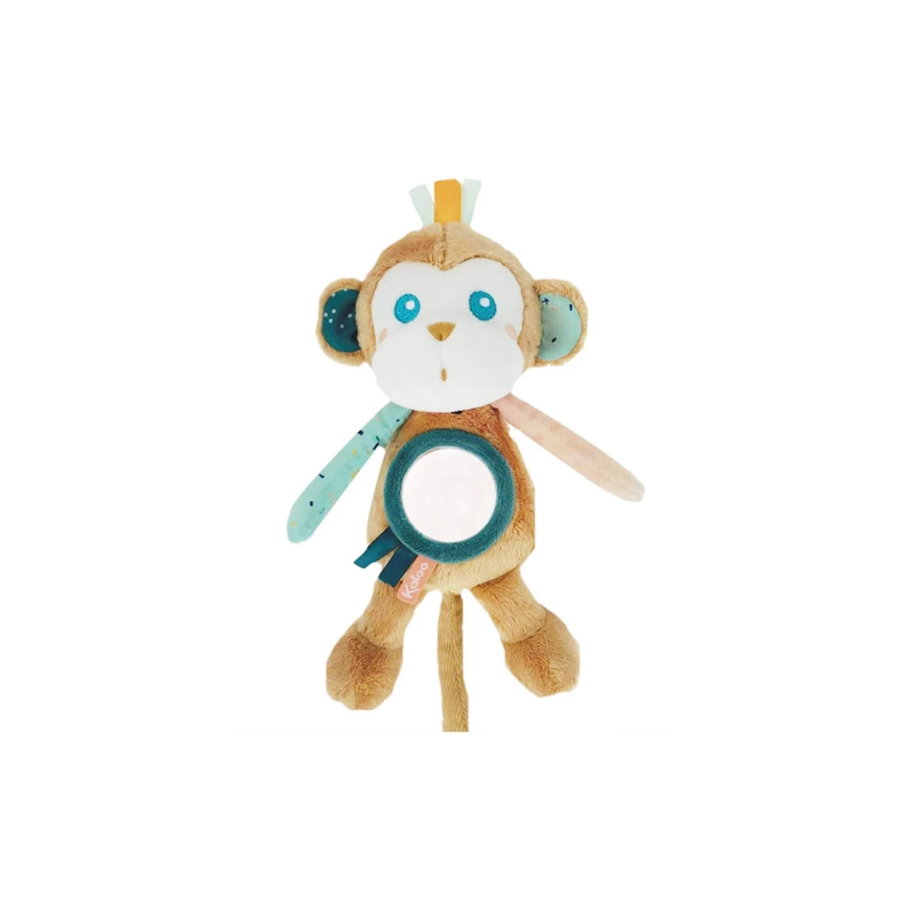 Cute little monkey includes a mirror to stimulate babie’s senses.