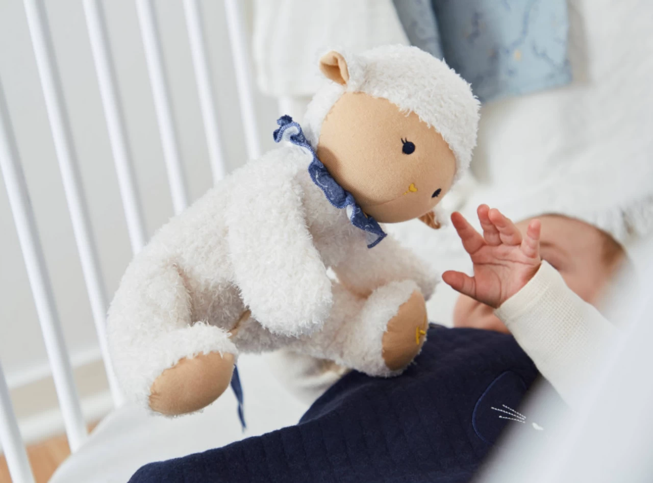 Discover the Doux Sommeil range, created on the theme of baby sleep, which is at the heart of parents’ concerns. The products designed are dedicated to bedtime to soothe baby from the first moments and help set up a bedtime ritual when he grows up. Our soft plush (9,75 inches) will comfort baby with its 6 soothing sounds (heartbeats, cicadas, rain, waves, cat purring, hair dryer) to calm him and gently put him to sleep. This soft sheep carries in its belly (scratch opening) the removable soothing sound box. The features of the box are detailed in the user manual included in the box. Useful information: