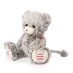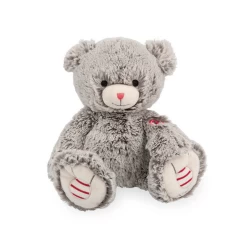 The grey prestige Maé bear Musical prestige 31 cm will be the ideal partner to be near baby and rock him to the soft sounds of “La Le Lu”. Your child will not be able to stop squeezing this adorable animal. Baby will enjoy playing with his little red nose and his soft ears! But above all, he will be able to pull on his tail to listen to the melodious sound of his music and fall asleep peacefully. His body is so soft and his long fur specially chosen for its exceptional softness invite the best of cuddles. Surface washable only. From birth.