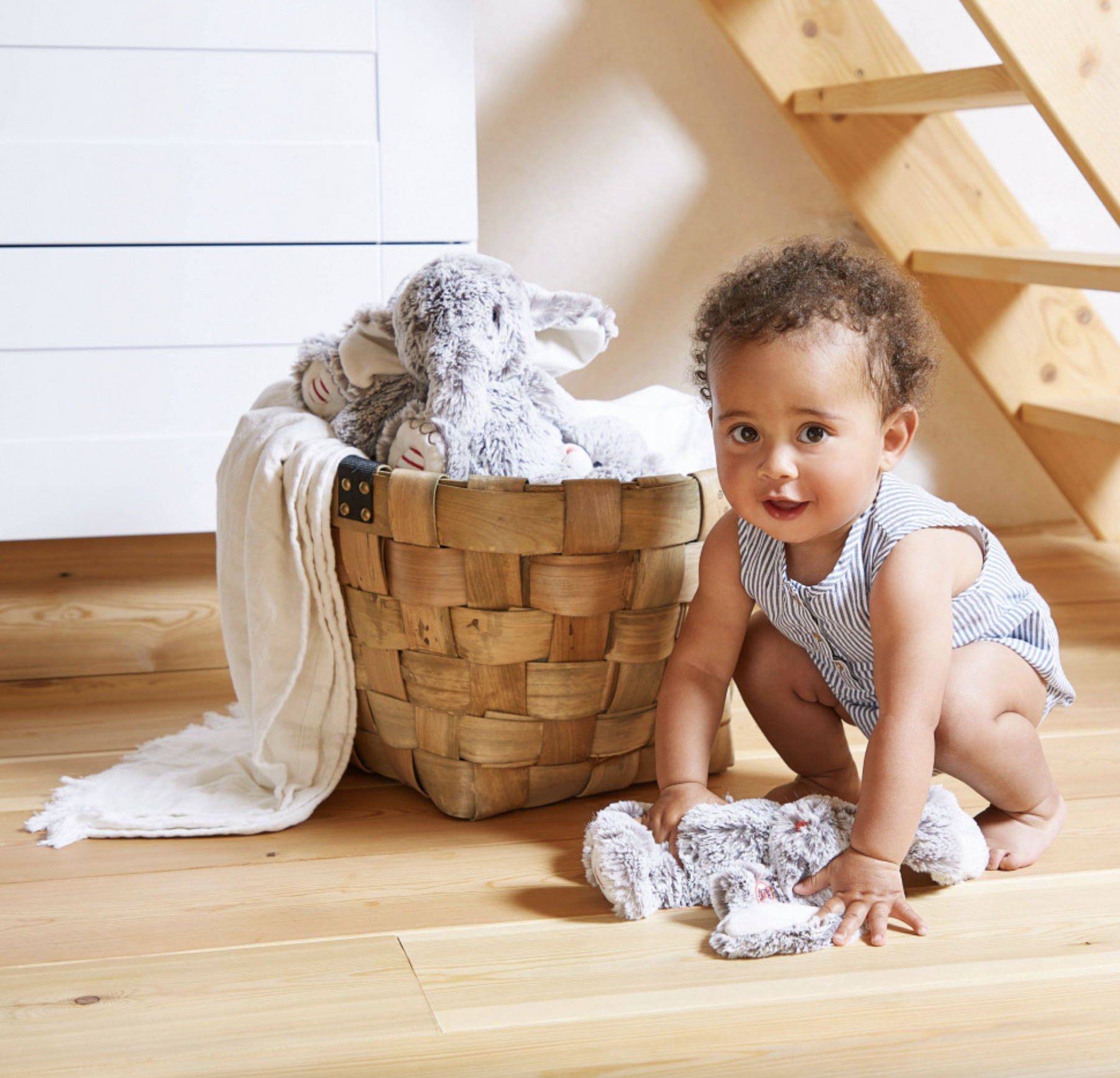 The grey prestige Noa elephant Musical 31 cm will be the ideal partner to be near baby and rock him to the soft sounds of “California Dreamin”. The child will be able to squeeze this cute animal, full of wisdom and intelligence. Baby will enjoy playing with his trunk and his big soft ears! But above all, he will be able to pull on his tail to listen to the melodious sound of his music and fall asleep peacefully. His body is so soft and his long fur specially chosen for its exceptional softness invite the best of cuddles. Surface washable only. From birth.