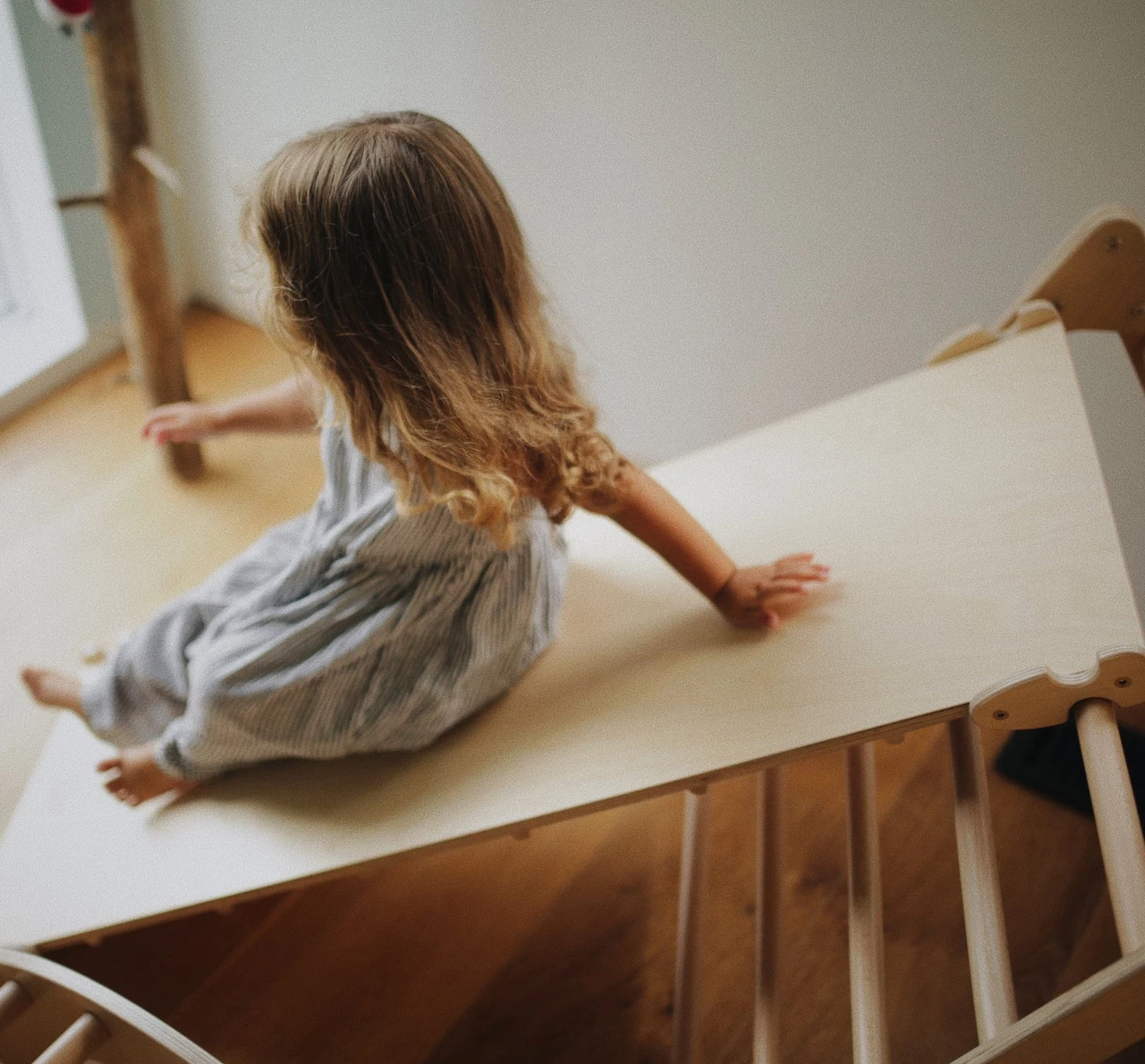 Each of our Pikler accessories is compatible with the others, and secure locks connect the system’s pieces safely and effectively while holding them in place. Link them together in a variety of ways to create your very own play ground — designed just the way you like! You can switch it up daily to explore new challenges and create unique obstacle courses. Each (accessory, furniture, TBD) is finished with a water-based varnish for smooth, comfortable play and easy cleaning.