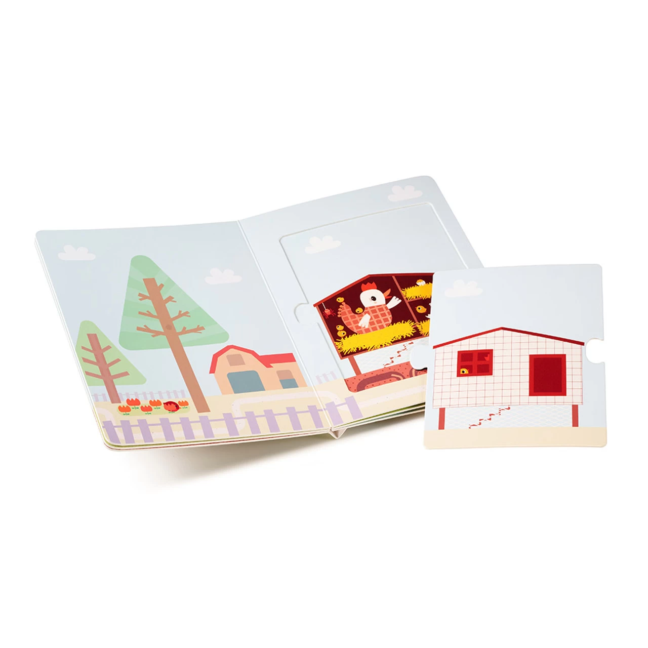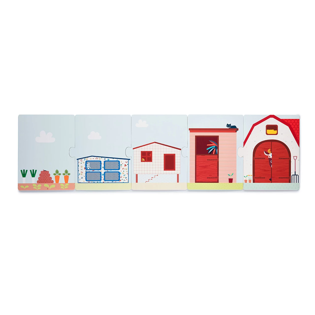 Discover which friends live in the houses and feel how different they are. Put the puzzle together page after page, going from small to big… or vice-versa! The puzzle is recto verso: double the fun!