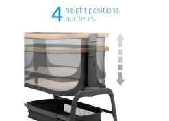 Modern Design and VersatilityThe Iora has a sleek and stylish design, with sophisticated colors and material finishes that blend in beautifully with your modern-day décor. The Iora has five different height positions that to give you a customized fit. Not only does the Iora adjust up and down, but side to side as well. For those moments in the middle of the night when your baby wakes up crying, you can easily glide the bassinet closer to the bed to give comfort and care. |