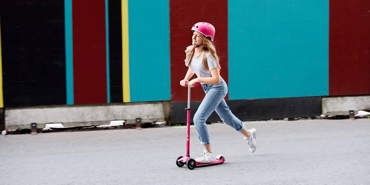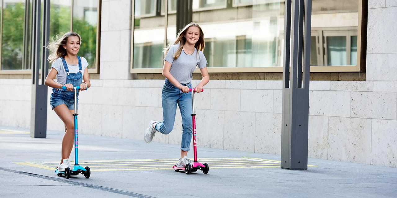 The Maxi Micro was originally meant to be the follow-up product to the Mini Micro, especially designed for kids who had outgrown the Mini Micro but were still too small and too light for the aluminium kickboards. However, the ultralight kickboard also became a trendy product over time for young-at-heart adults, which is why we have reworked it and reinforced the deck so it can now carry a body weight of up to 70 kg. It only weighs 2.5 kg, therefore steering is particularly easy and you practically glide over the asphalt. The additional grip on the deck gives the rider a secure hold, and the anodised handlebar adds to the very classy appearance of the Maxi Micro Deluxe.