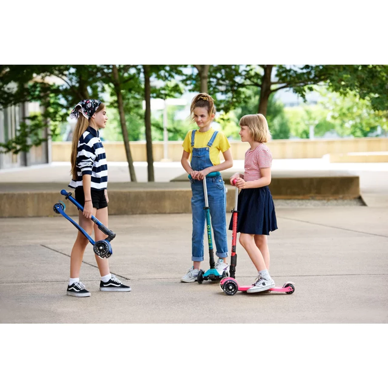 - Loved for its super smooth glide, the Maxi’s 3-wheel kickboard-style ride feels a little like being on a skateboard, but with more control.