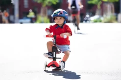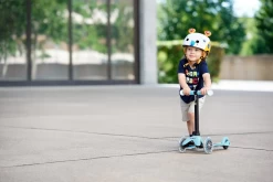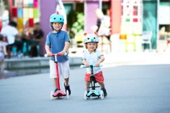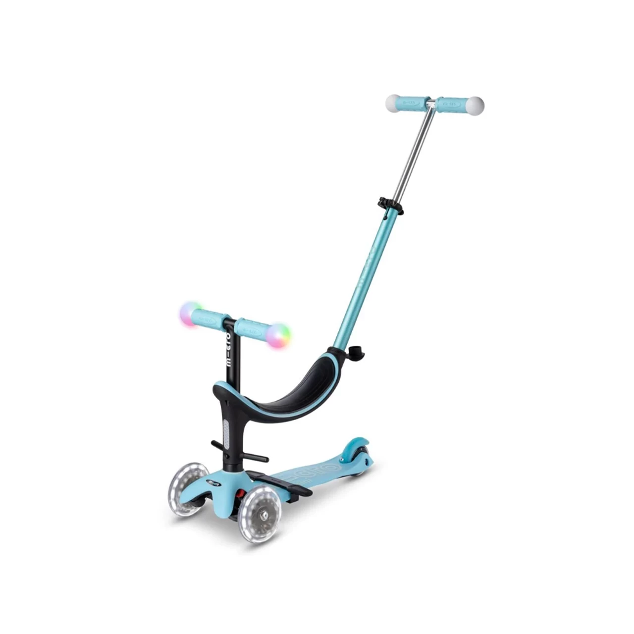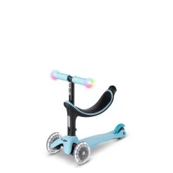 The Micro Mini2Grow Deluxe Magic LED is the perfect companion for the first years of your child’s life. Thanks to its multifunctionality, it can be used from the age of 12 months and will accompany your child until at least the age of six. The innovative and ergonomic all-in-one scooter can be used in different variations: at the very beginning with seat, two footrest options and push bar for the parents, later on without push bar, as a mix between balance bike & scooter and finally as a classic Mini Micro Deluxe with magic LED light bulbs on the handlebar and LED moon wheels. The push bar for the parents can be used vertically in addition to the standard horizontal position. This means that only one hand is needed for pushing, thus protecting the wrist and muscles. In addition, the Micro Mini2Grow Deluxe Magic LED convinces with a height-adjustable handlebar, a patented lean-to-steer mechanism and an extra grippy footboard.