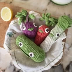 This rattle is suitable for babies, girls or boys, from birth. It is handmade with crochet. Its texture and bell help awaken the senses and its carrot shape is created to make babies aware of nature and healthy eating. This rattle comes with an eco-responsible paper bag, as if it came out of the market.