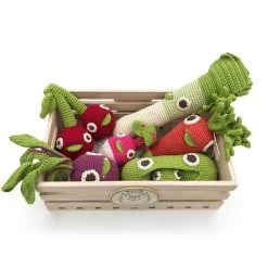 This rattle is suitable for babies, girls or boys, from birth. It is handmade with crochet. Its texture and bell help awaken the senses and its green peas shape is created to make babies aware of nature and healthy eating. This rattle comes with an eco-responsible paper bag, as if it came out of the market.