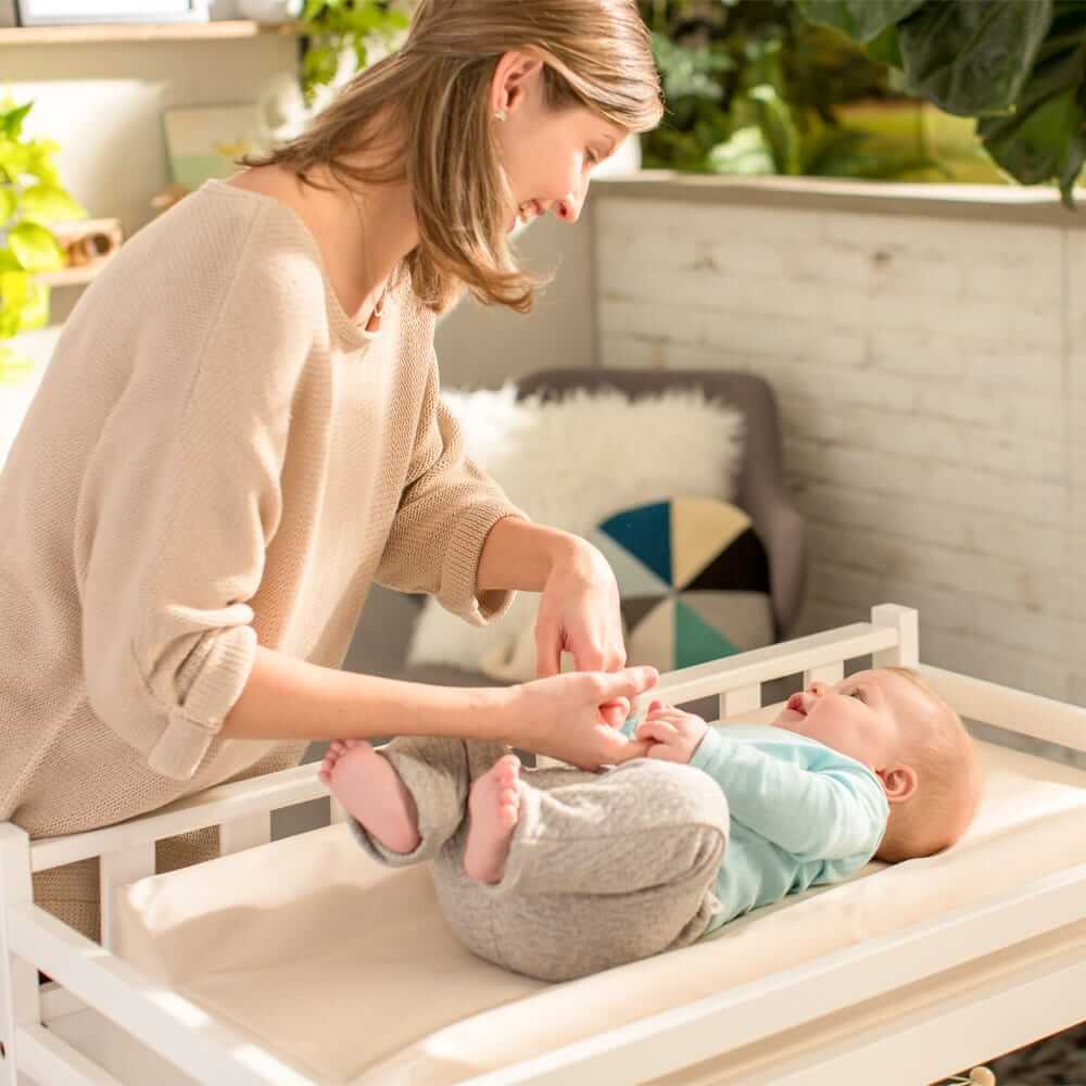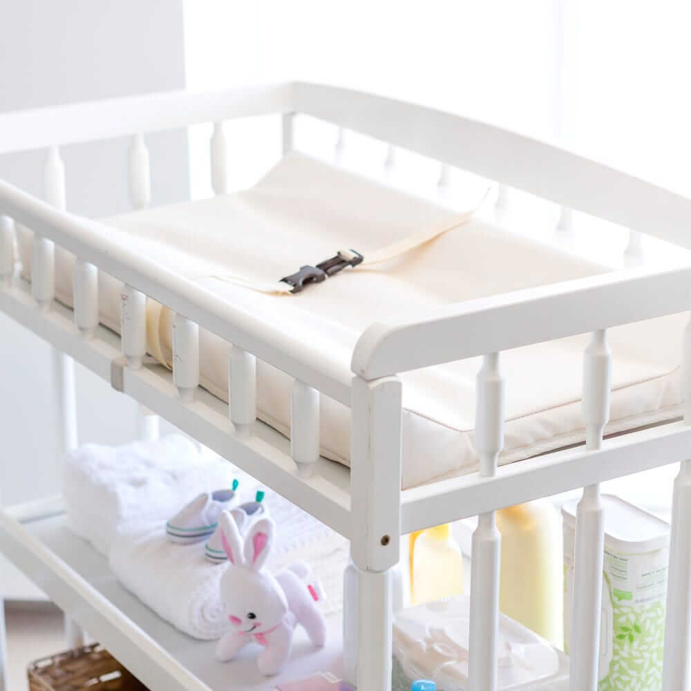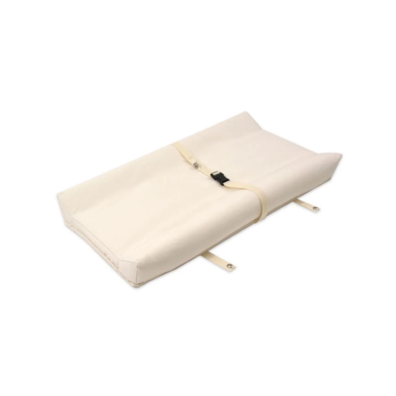 Features a luxurious organic cotton fabric with a clear food-grade waterproof coating made from non-GMO sugarcane. Non-allergenic and easy-to-clean. Safety buckle helps secure baby while changing and snap screws included to secure the pad to a dresser while at home.