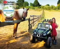 Polaris Ranger RZR Green Shadow is a powerful two-seater electric off-road vehicle for adventurous kids from 6 and up that travels at speeds of up to 10 km/h. The powerful wheels are suited to any type of terrain, and can easily deal with slopes of up to 17%, travelling over even the roughest terrain. Runs on a 24V/12Ah/300Wh rechargeable battery. Agile and robust, for unlimited adventures!