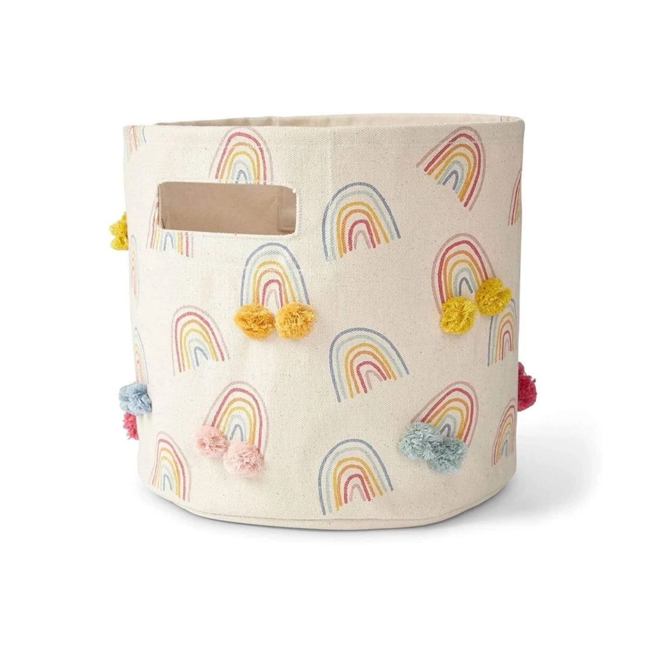 How many baskets does a household with kids need? Plenty! From clothes to jackets to mitts to boots to trucks to balls to blocks to beach gear…there is never enough storage for all our kids’ needs. That is why Pehr has designed a collection of baskets in varying sizes and styles. Being a women-owned company themslves, they know what we parents need. This Pehr Pom Pom Happy Days Pint Basket is the perfect compliment to a baby’s nursery, a child’s bedroom or play area. Hide your clutter while looking stylish and organized. This Pehr Pom Pom Happy Days Pint Basket is both beautiful and practical. Each basket is made from 100% heavyweight durable cotton canvas to withstand rigorous use. And each playful pom pom is sewn by hand adding an extra one-of-a-kind touch.