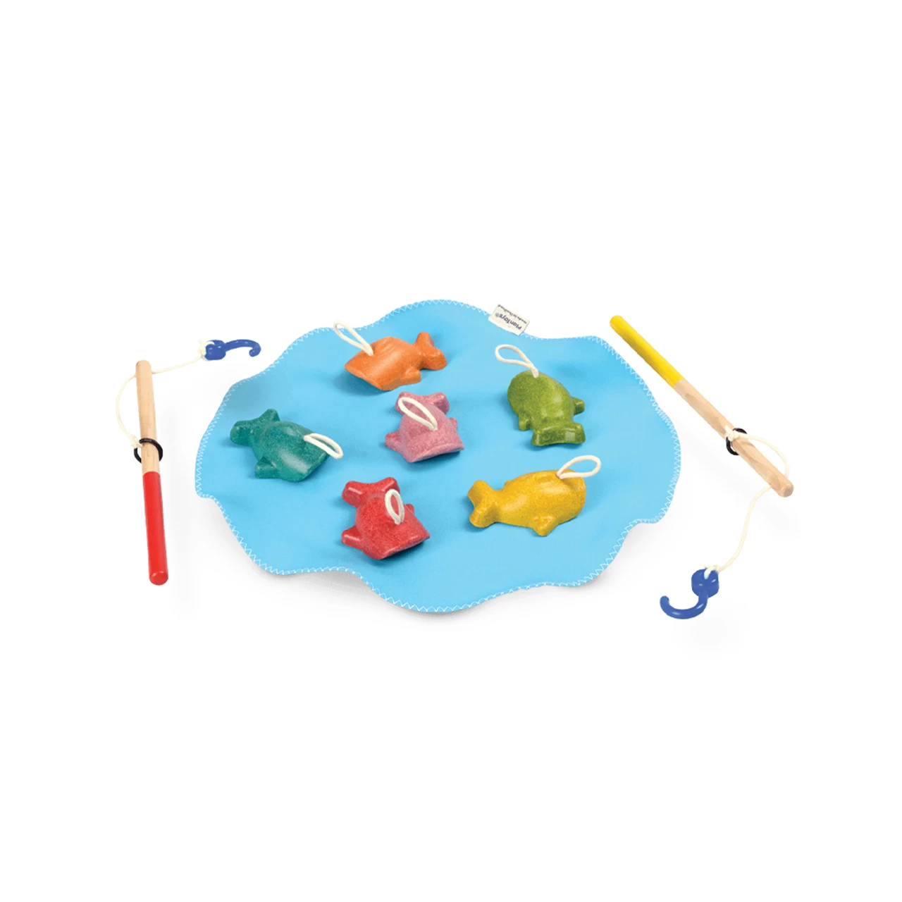 Gone fishin’! The set includes 6 colorful fish, pond-blue fabric, and 2 fishing rods. Rods can be adjusted from beginner to advanced level.