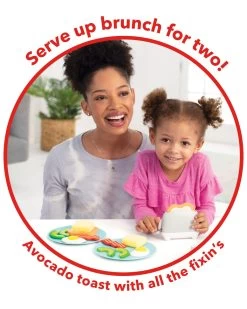 - 16-piece set includes: Pop-Up Toaster, 2 Plates, 2 Bread Slices, 2 Butters, 4 Avocado Slices, 2 Eggs, 2 Bacon Strips, Serving Tray