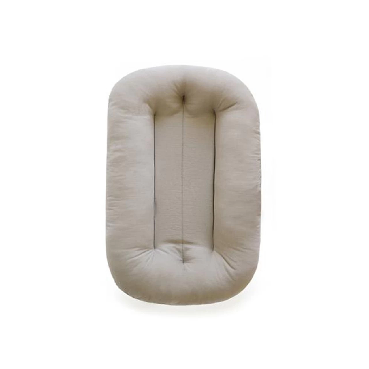ORGANIC, SUSTAINABLE & ETHICALLY MADE We are in love with the idea of quality organic baby items. We entrust local, Minnesota seamstresses and fillers with the crafting of each Snuggle Me® Lounger. Made with organic, non-toxic, breathable, and hypoallergenic fabrics. Filled with polyester fiber fill for a fully machine-washable lounger.