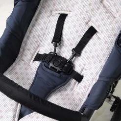 A stroller seat with two layers of mesh material with high breathability and cushioning.