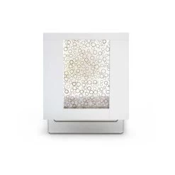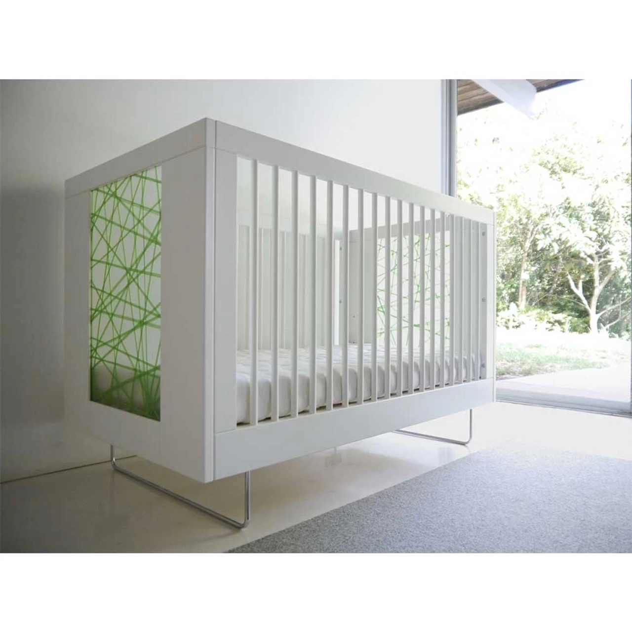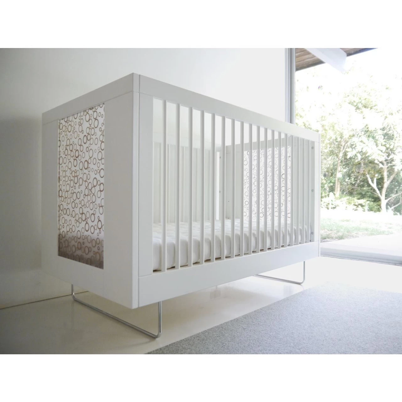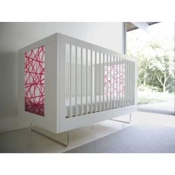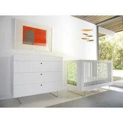 NEW colors for the Alto Crib! Influenced by mixed material usage within modern architecture, the Alto Crib features airy translucent panels with encapsulated organic materials to create a visually stunning piece for the modern nursery. The gracefully curved chrome legs are specially customized to accentuate the crisp white finish and thoughtfully paired with the playful yet elegant contrast of the colorful translucent panels. Consciously designed, the architectural panels of the Alto Collection are free of harmful materials such as BPA, phthalates, dioxins, lead, cadmium or endocrine disruptors. Choose from multiple interchangeable patterns. The Alto Collection includes a crib, dresser, changing tray, bookshelf and credenza.