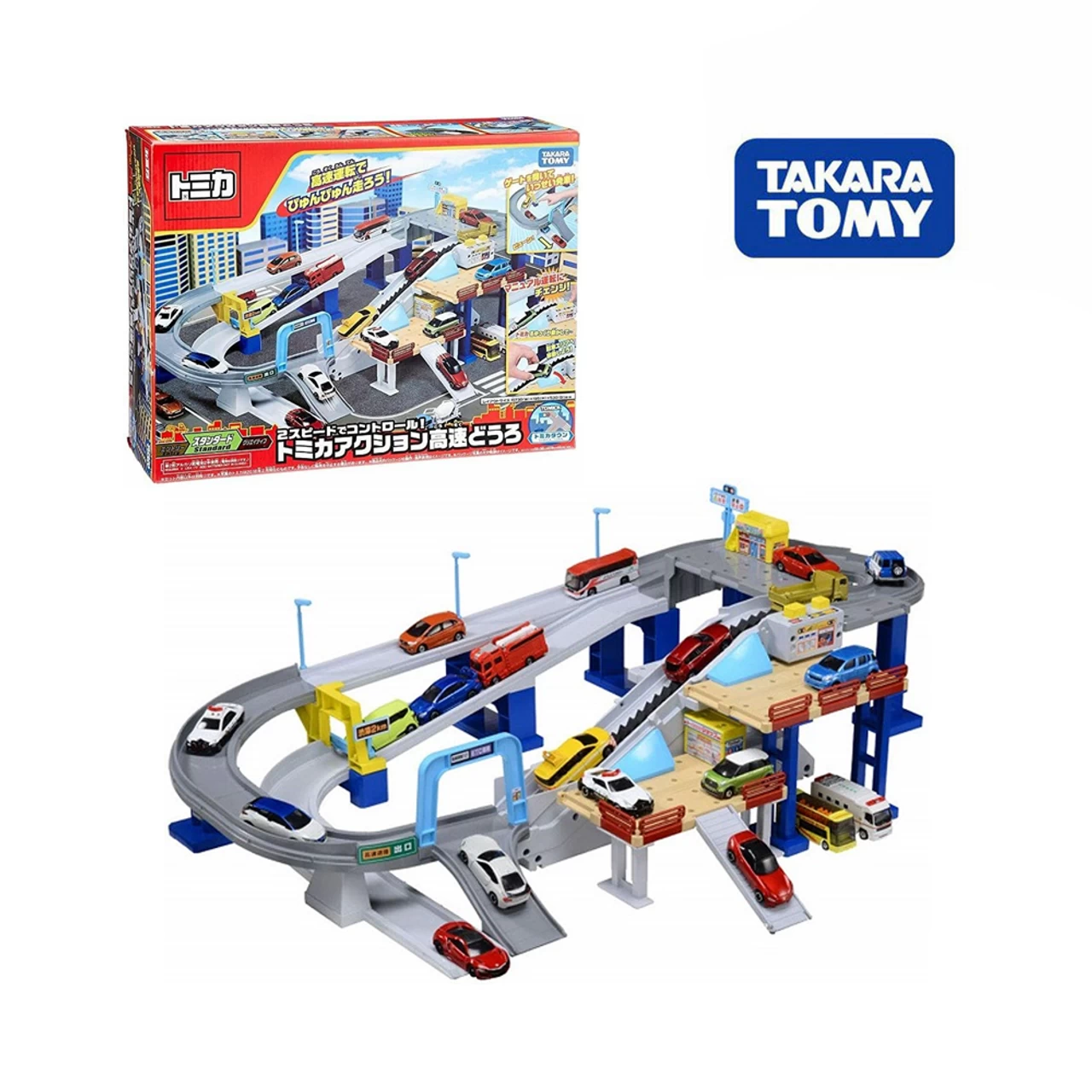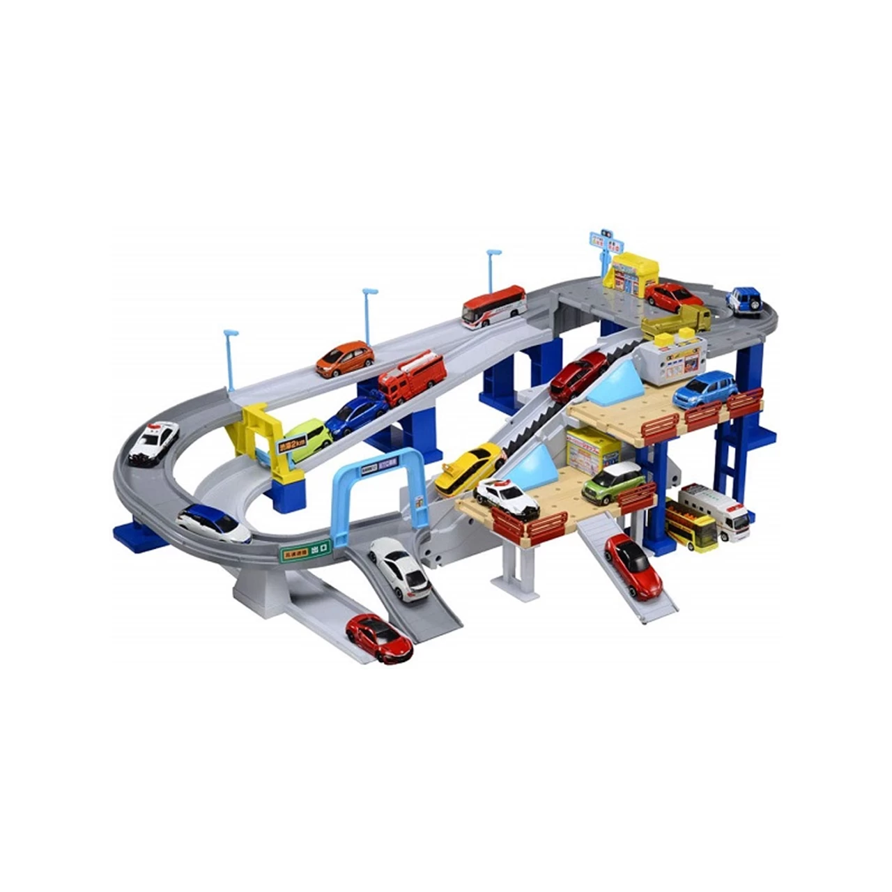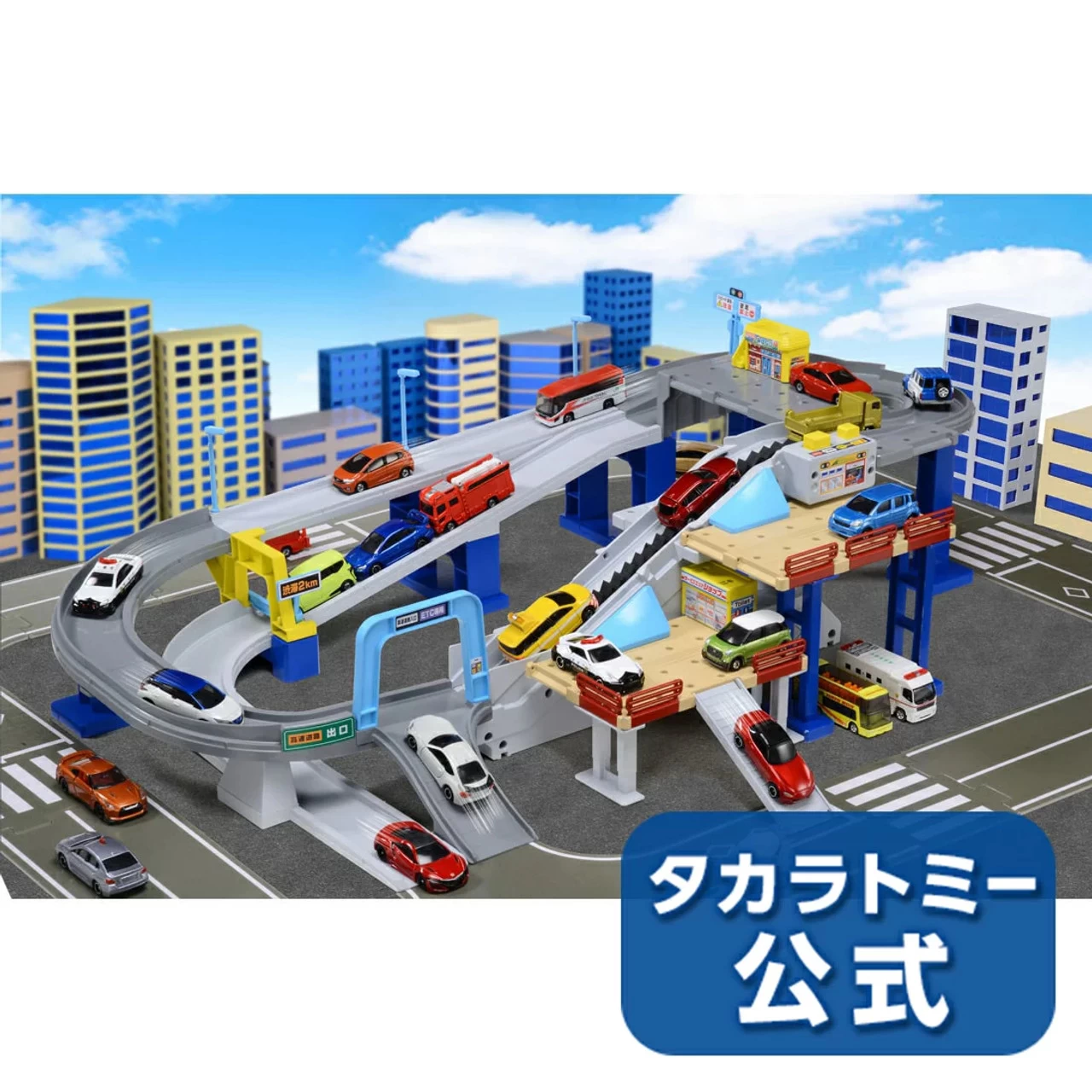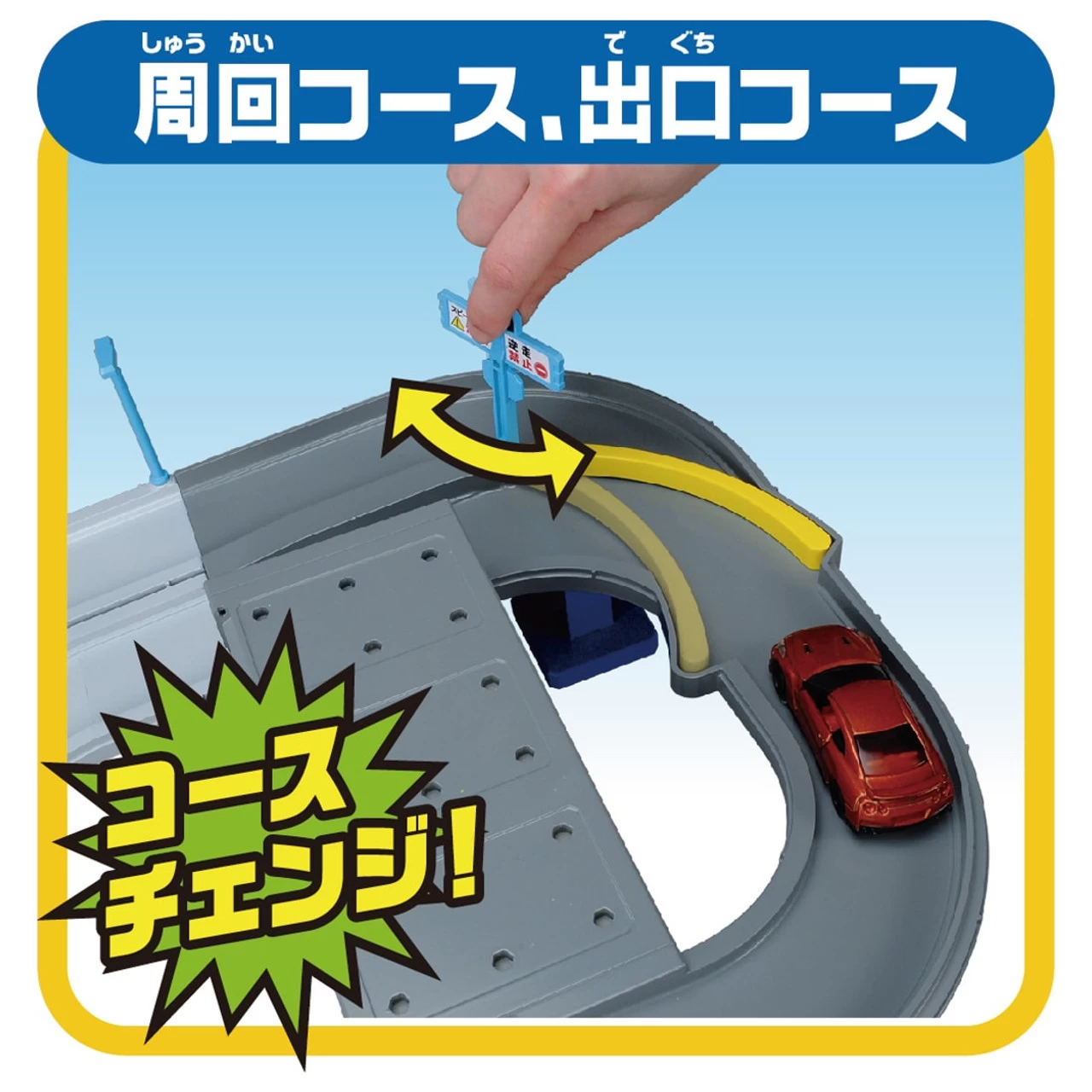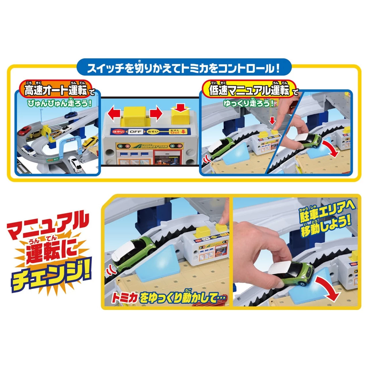 A big highway where Tomica runs steadily with an electric slope that can be played by switching speeds!