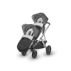 Protect children from the sun with two extra-large, multi-paneled canopies + pop out UPF 50+ sunshades, and let them relax with the dual, multi-position independent reclining seats.