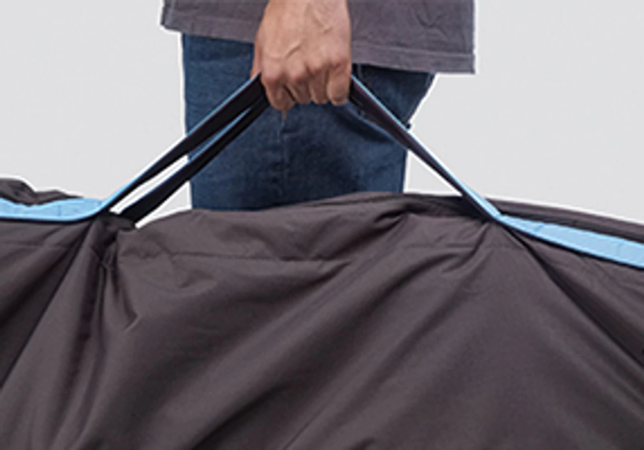 Durable, luggage-grade fabric can be rolled up for easy storage and travel