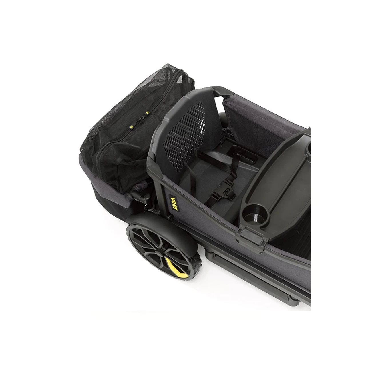 Designed to add even more cargo space to the Cruiser, our lightweight aluminum and soft-sided storage basket mounts solidly into the Cruiser”s two anchor points behind the rear seat. It folds for easy transport or storage without removal. The soft-sided construction is removable and machine washable. A mesh zipper hood either discreetly rests on the bottom of the basket or doubles its capacity by covering clothes and other bulky items. Drink and Snack Tray and Napper both fit comfortably in this accessory.